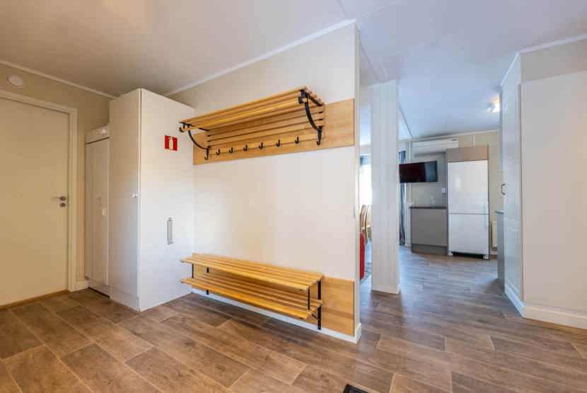 Opholdsstue med køkkenafdeling. TV, tørreskab, 1 højstol, 1 barneseng, rum til skiudstyr.
