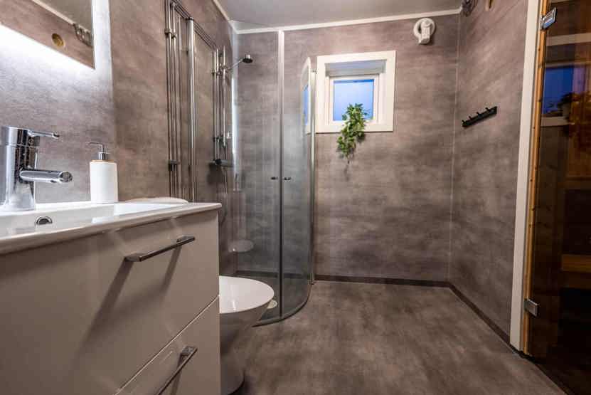 Badeværelset-1 = 1 bruse/wc/sauna. Badeværelset-2 = 1 bruse/wc.