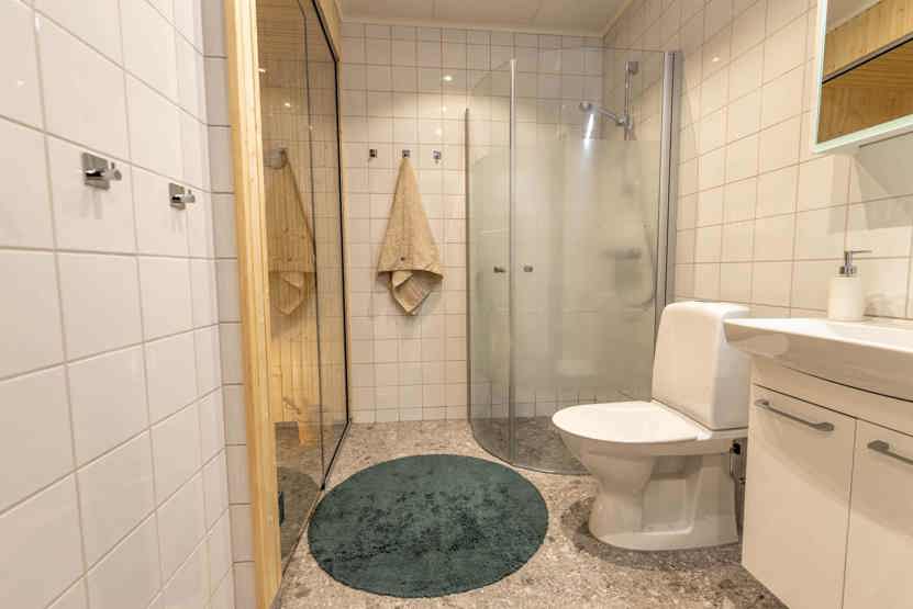 Badeværelset-1 = bruse/wc. Badeværelset-2 = bruse/wc/sauna.