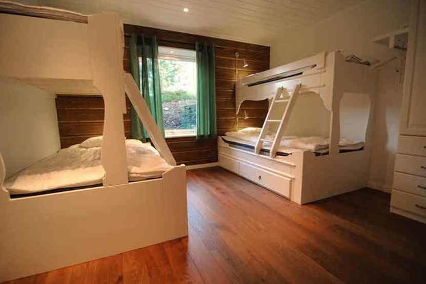 Soveværelse-1= 1 dobbeltseng. Soveværelse-2= 2 køjesenge med 120 cm bred underkøje . Soveværelse-3= 1 køjeseng med 120 cm bred underkøje .