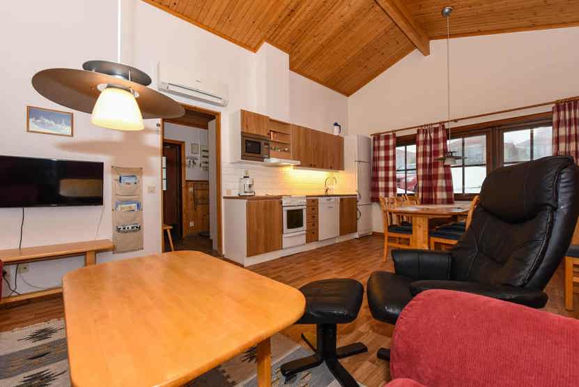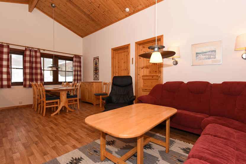 Opholdsstue med køkkenafdeling. TV, tørreskab, rum til skiudstyr.