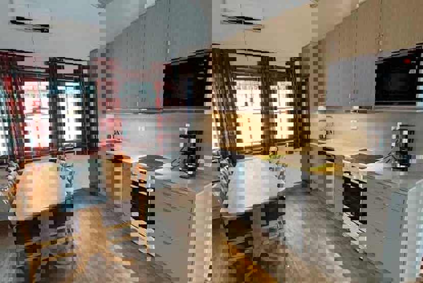 Opholdsstue med køkkenafdeling.