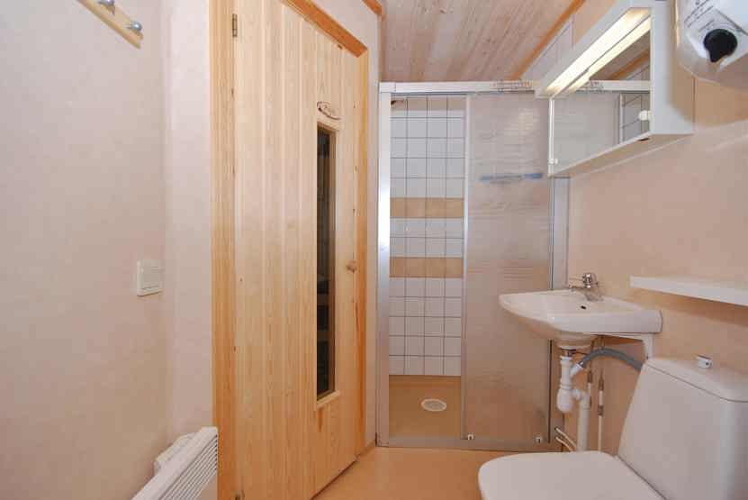 Badeværelset-1 = bruse/wc/håndklædetørrer. Badeværelset-2 = bruse/wc/sauna.