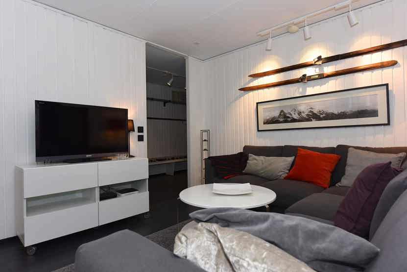 TV, tørreskab, balkon, 4 lejligheder i samme hus, rum til skiudstyr, 1 parkeringsplads, adgang til fælles elbilopladere med type 2 stik mod betaling.