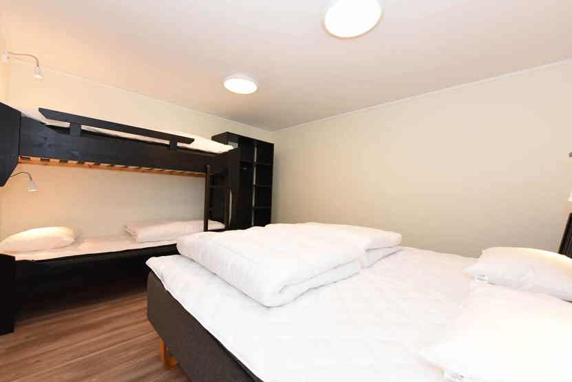 Soveværelse-1= 1 dobbeltseng, 1 køjeseng.