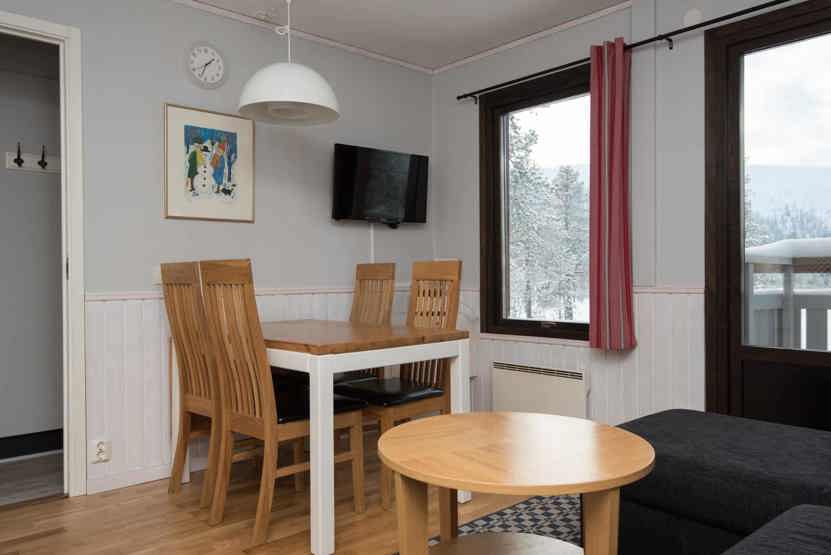 TV, tørreskab, adgang til fælles sauna, 8 lejligheder i samme hus, balkon, rum til skiudstyr, 1 parkeringsplads, adgang til fælles elbilopladere med type 2 stik mod betaling.