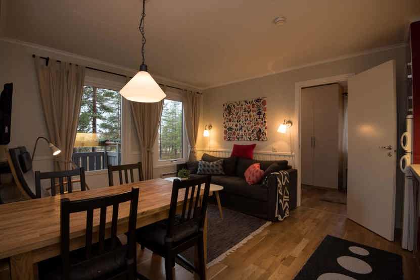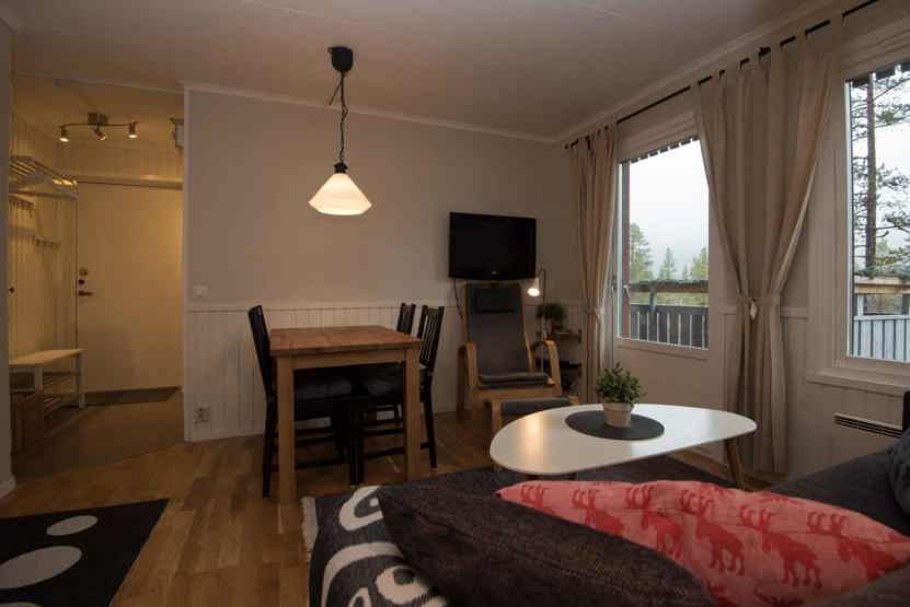TV, tørreskab, adgang til fælles sauna, 8 lejligheder i samme hus, balkon, rum til skiudstyr, 1 parkeringsplads, adgang til fælles elbilopladere med type 2 stik mod betaling.
