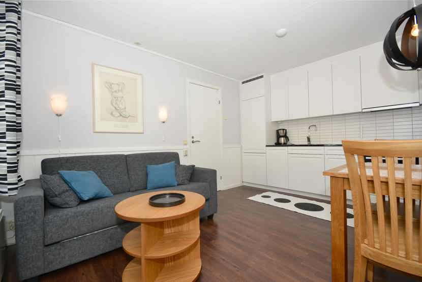 Opholdsstue med køkkenafdeling.
