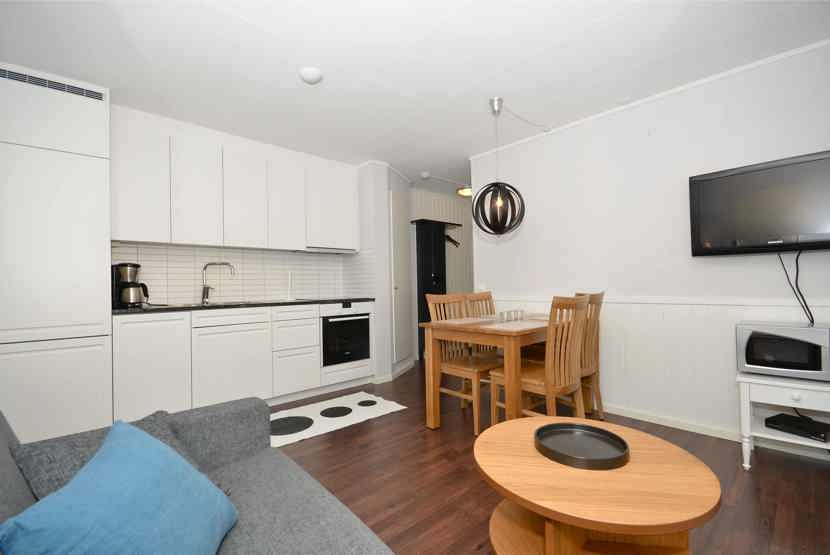TV, tørreskab, adgang til fælles sauna, 8 lejligheder i samme hus, rum til skiudstyr, 1 parkeringsplads, adgang til fælles elbilopladere med type 2 stik mod betaling.