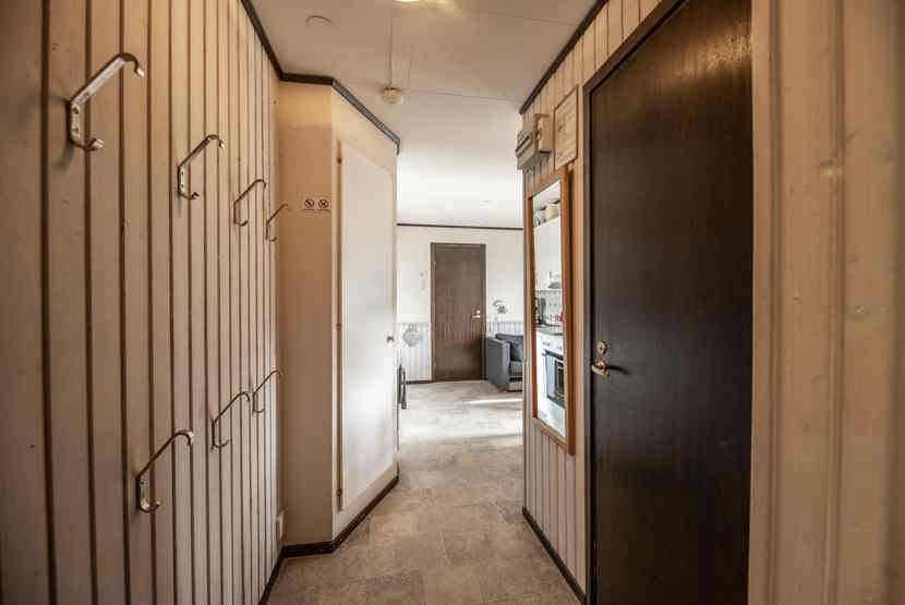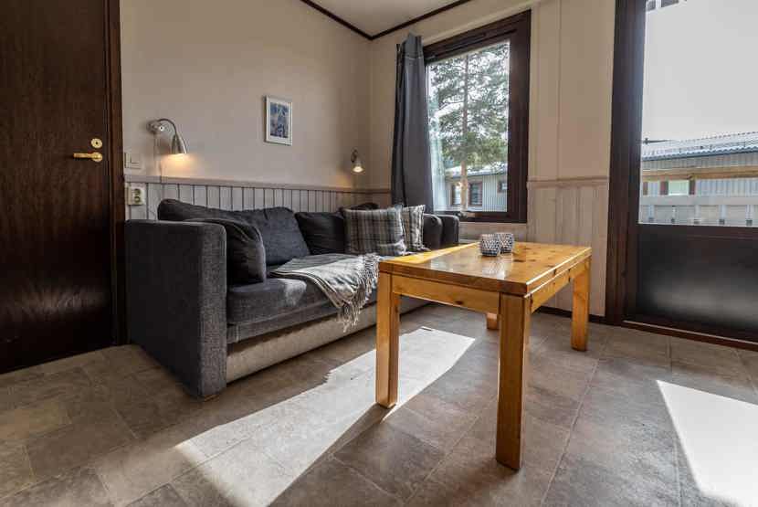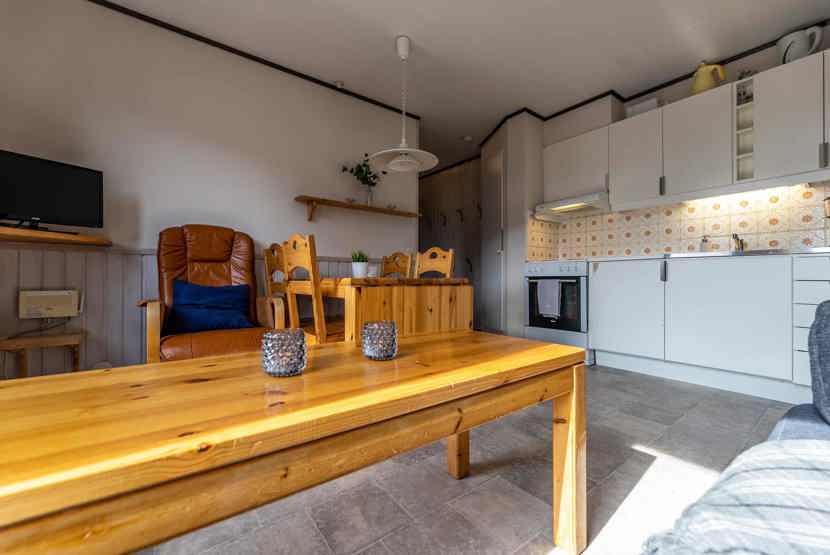 Opholdsstue med køkkenafdeling. TV, tørreskab, adgang til fælles sauna, 8 lejligheder i samme hus, balkon, rum til skiudstyr, 1 parkeringsplads, adgang til fælles elbilopladere med type 2 stik mod betaling.