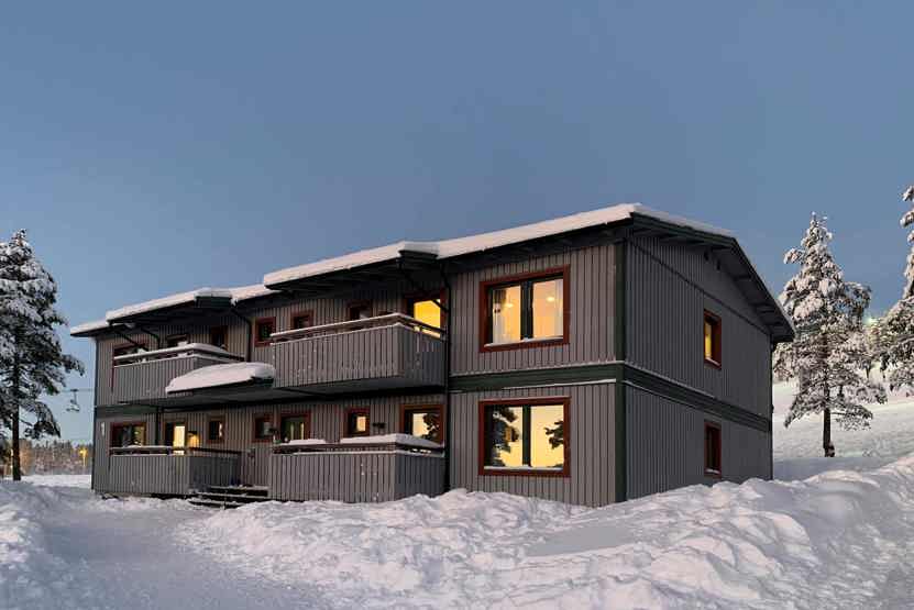 Grå Byn ligger i Tandådalen. Stuelejlighed, 4+1 sengepladser, 32 m², alrum med køkkenafdeling, 1 soveværelse, 1 bruser, 1 WC, adgang til fælles sauna.