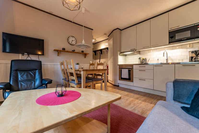 TV, tørreskab, skotører, adgang til fælles sauna, 8 lejligheder i samme hus, rum til skiudstyr, 1 parkeringsplads, adgang til fælles elbilopladere med type 2 stik mod betaling.