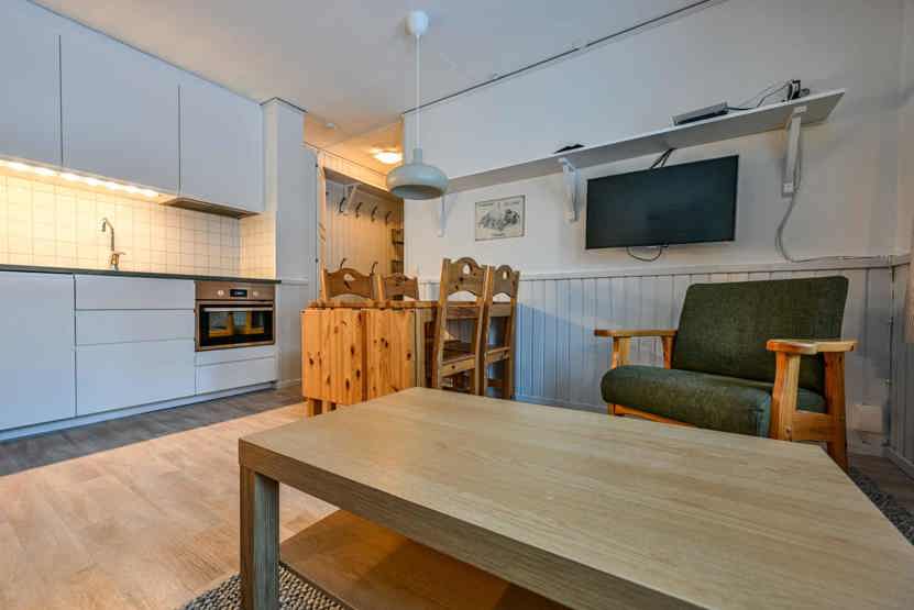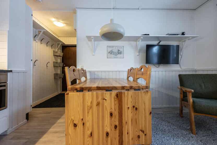 TV, tørreskab, adgang til fælles sauna, 8 lejligheder i samme hus, rum til skiudstyr, 1 parkeringsplads, adgang til fælles elbilopladere med type 2 stik mod betaling.
