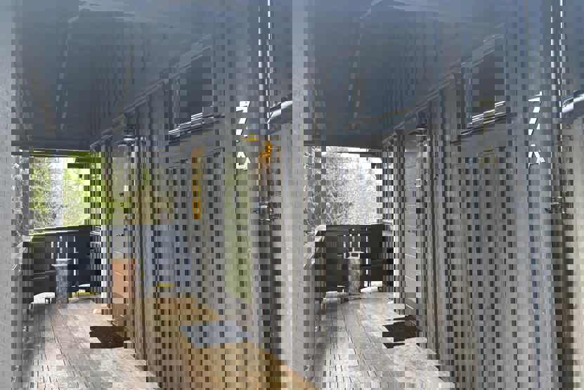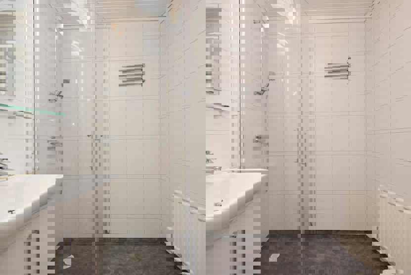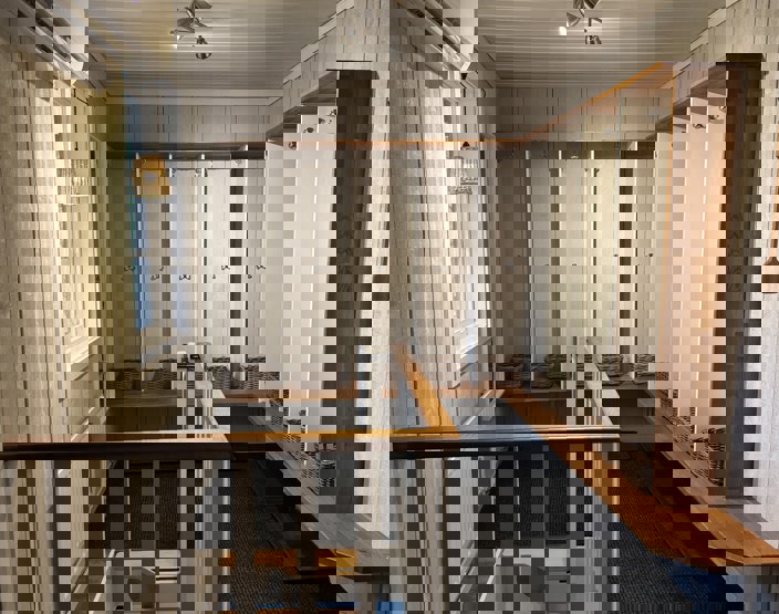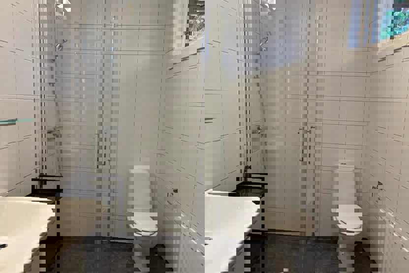 Badeværelset-1 = bruse/wc. Badeværelset-2 = bruse/wc. Badeværelset-3 = Badeværelse med afslapningsrum med bruse og sauna.