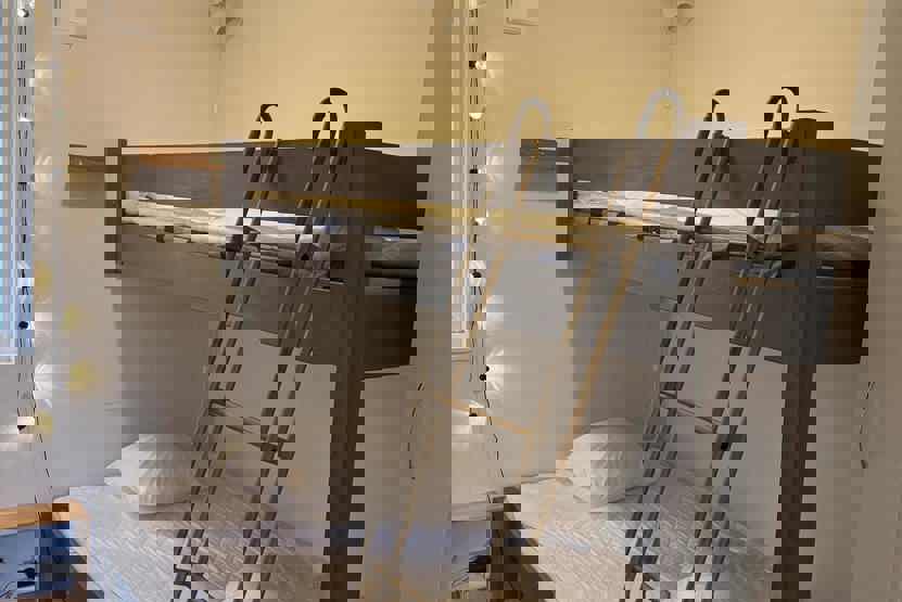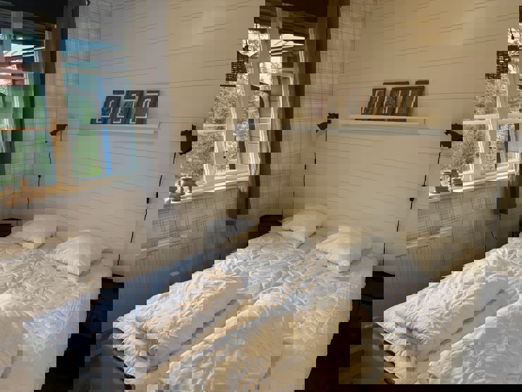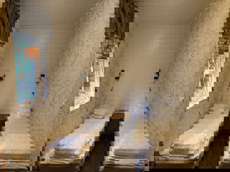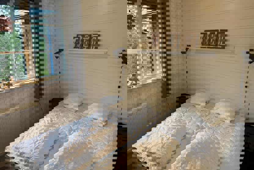 Soveværelse-1= 1 dobbeltseng. Soveværelse-2= 1 dobbeltseng som kan laves om til to enkeltsenge. Soveværelse-3= 1 køjeseng med 120 cm bred underkøje . Soveværelse-4= 1 køjeseng med 120 cm bred underkøje .