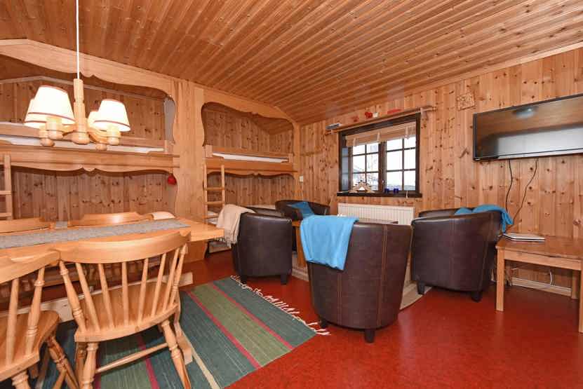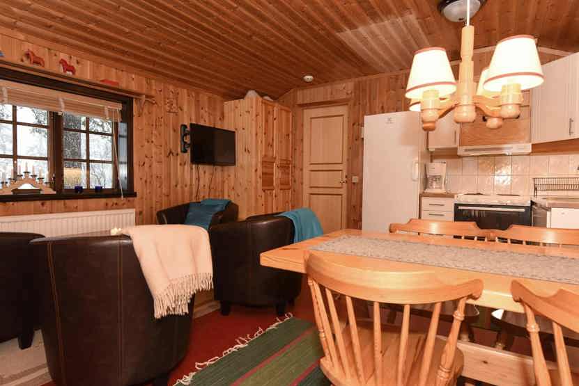 TV, tørreskab, rum til skiudstyr, hytten ligger på samme grund som en anden hytte.
