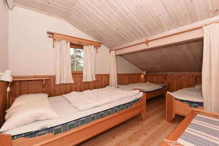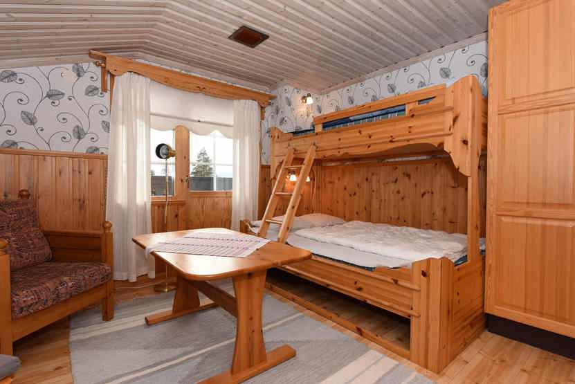 Hems 1= opholdsstue med 1 køjeseng med bred underkøje , soveværelse med 1 stk. 120 cm bred seng og 2 enkeltsenge.