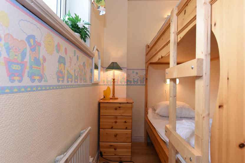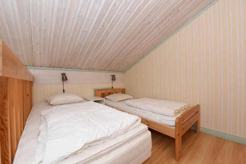 Hems 1= 2 enkeltsenge, et soveværelse med 1 dobbeltseng, et soveværelse med 1 køjeseng.