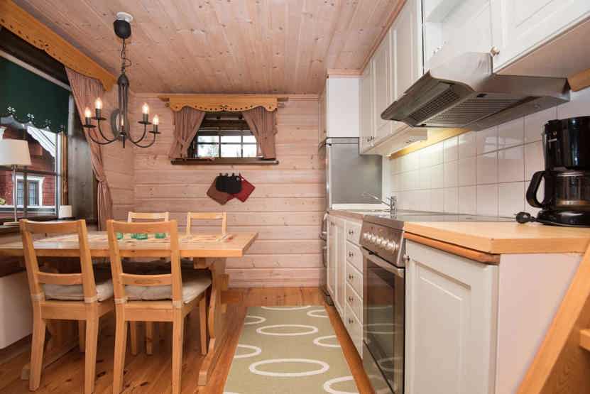 Køkkenet indeholder: elkomfur med ovn, køleskab, frys, microovn.