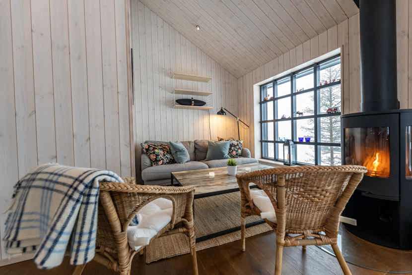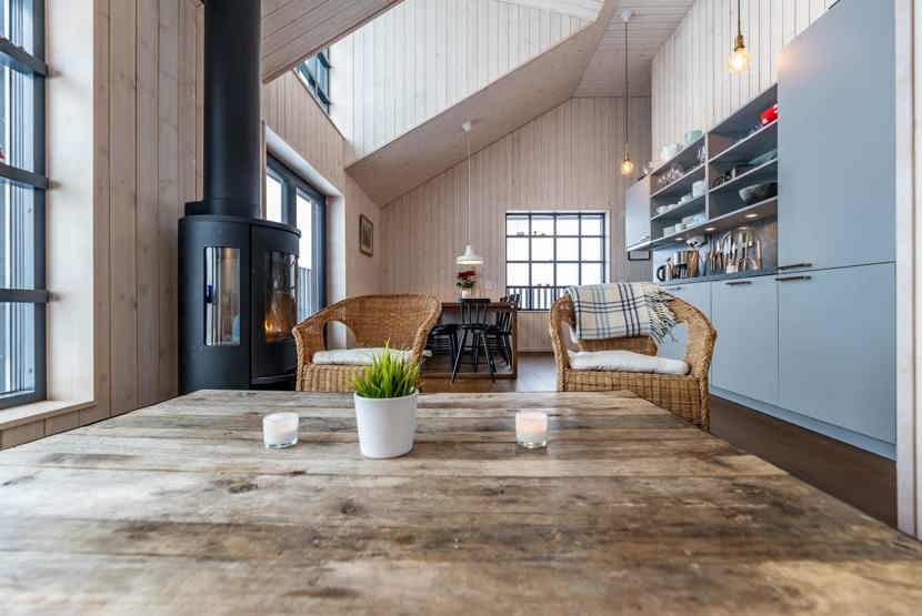 brændeovn (brænde indgår ikke), TV, 1 højstol, vaskemaskine, tørreskab, tørretumbler, altan (skovles ikke), (Jacuzzien er kun til privat brug og indgår ikke i den formidlede bolig.)
