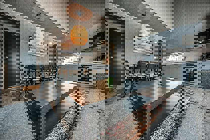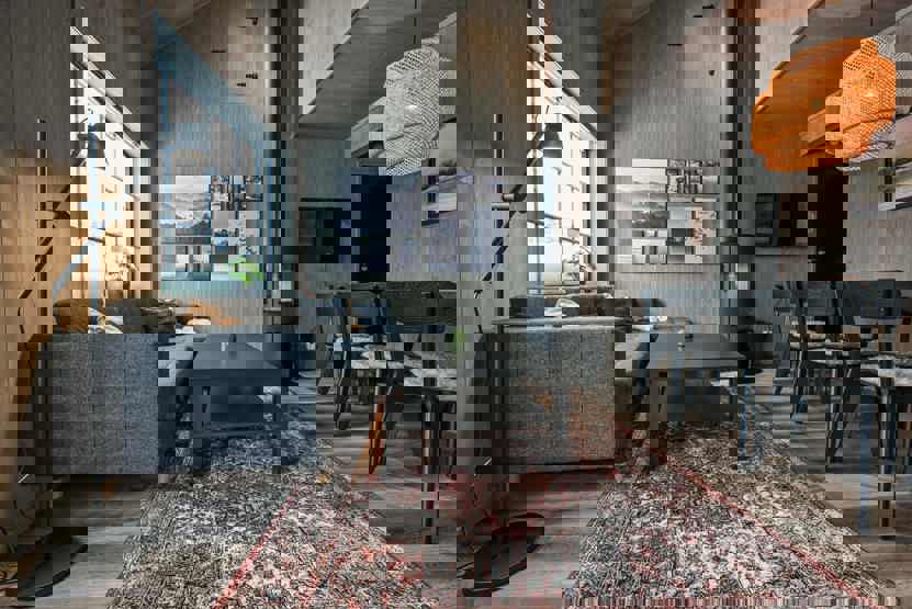 Opholdsstue med køkkenafdeling. TV, brændeovn (brænde indgår ikke), vaskemaskine, tørretumbler, rum til skiudstyr, 1 parkeringsplads.