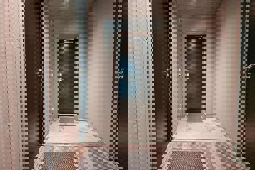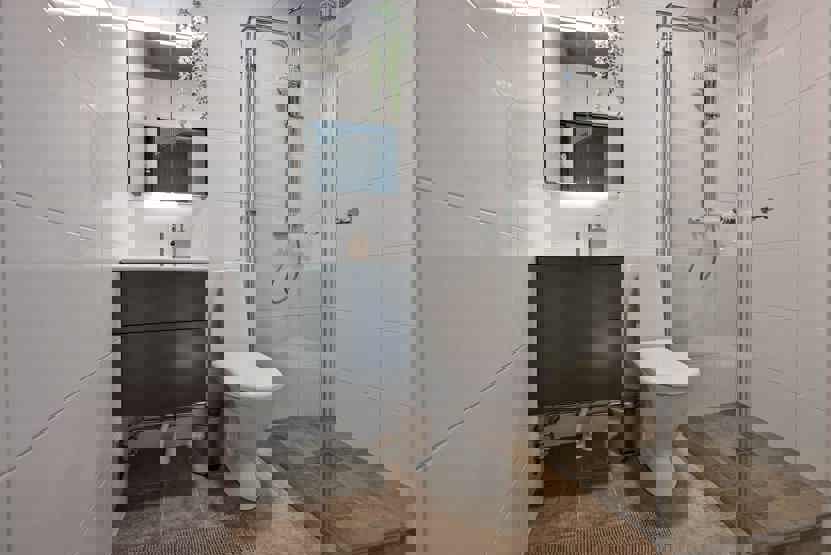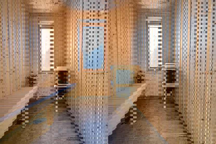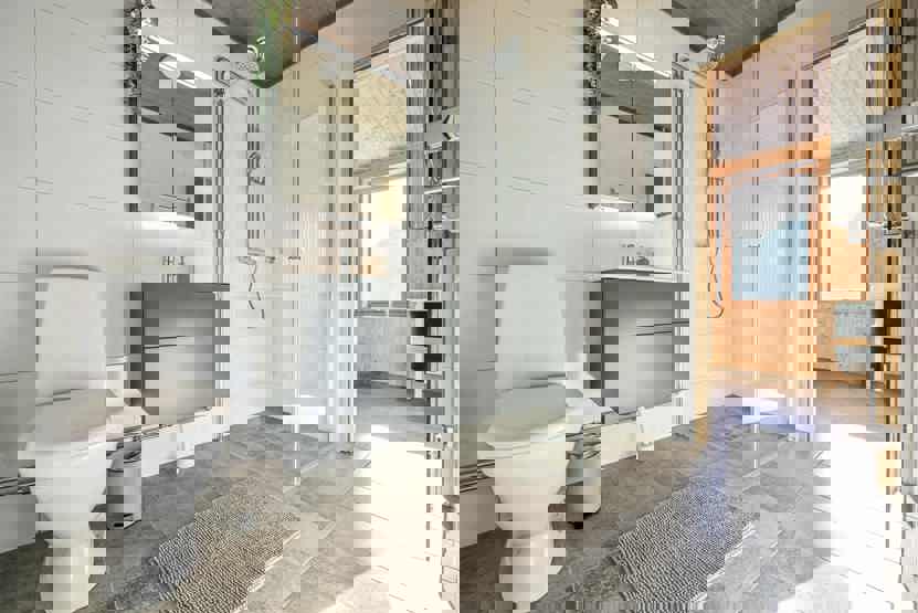 Badeværelset-1 = bruse/wc/sauna. Badeværelset-2 = bruse/wc.