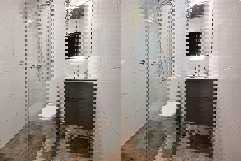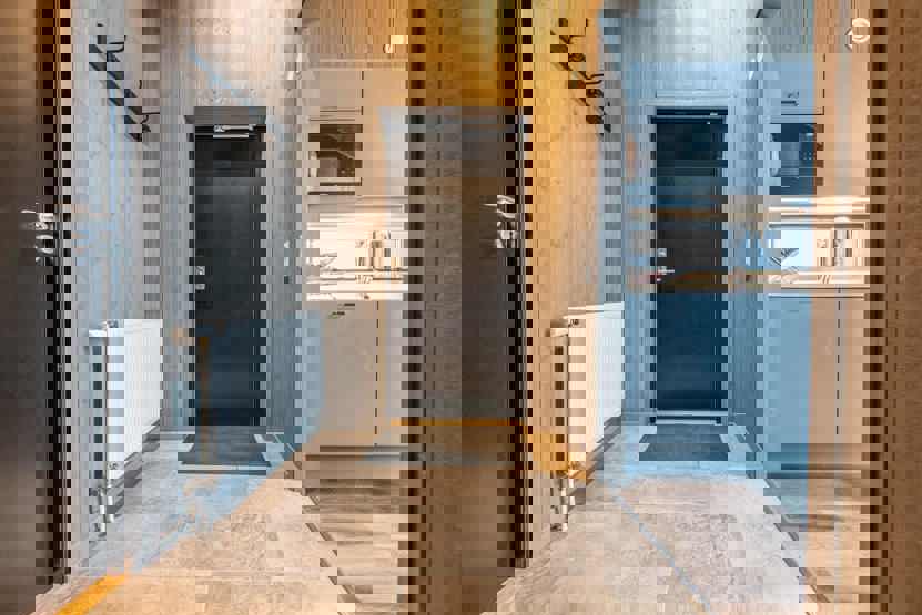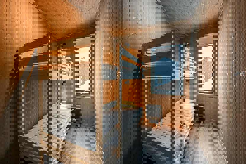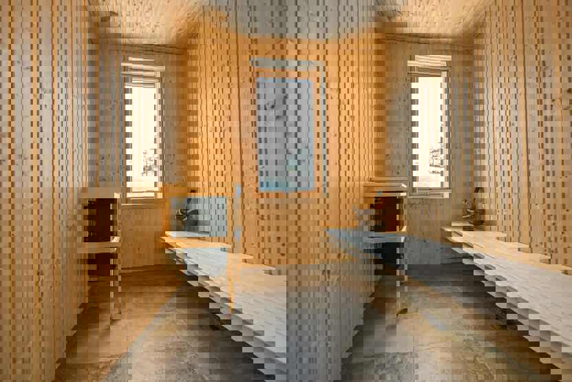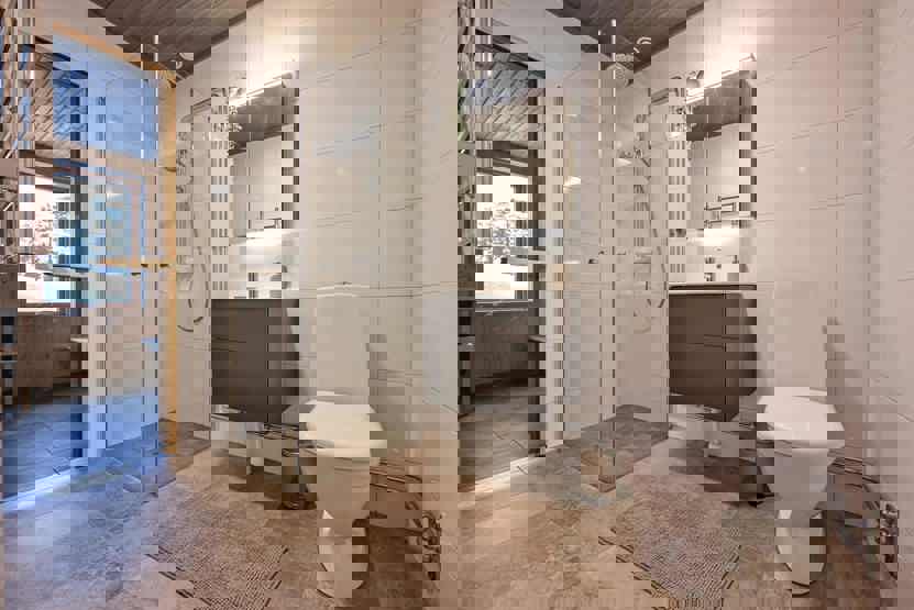 Badeværelset-1 = bruse/wc/sauna. Badeværelset-2 = bruse/wc.