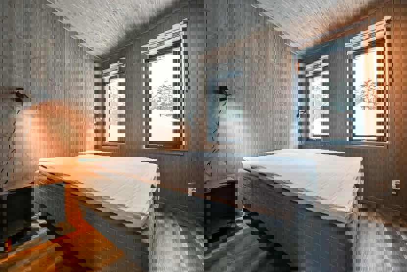 Soveværelse-1= 1 dobbeltseng 160 cm bred. Soveværelse-2= 1 køjeseng hvor både over og underkøje er 90 cm bred.