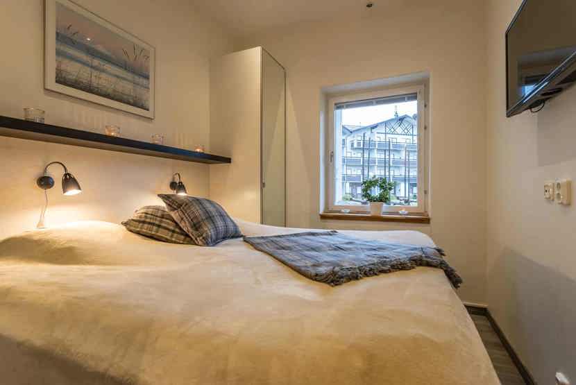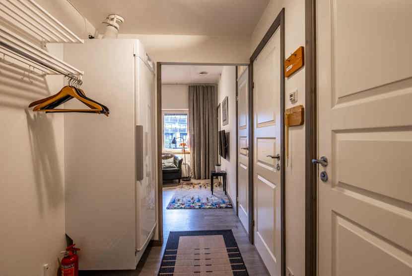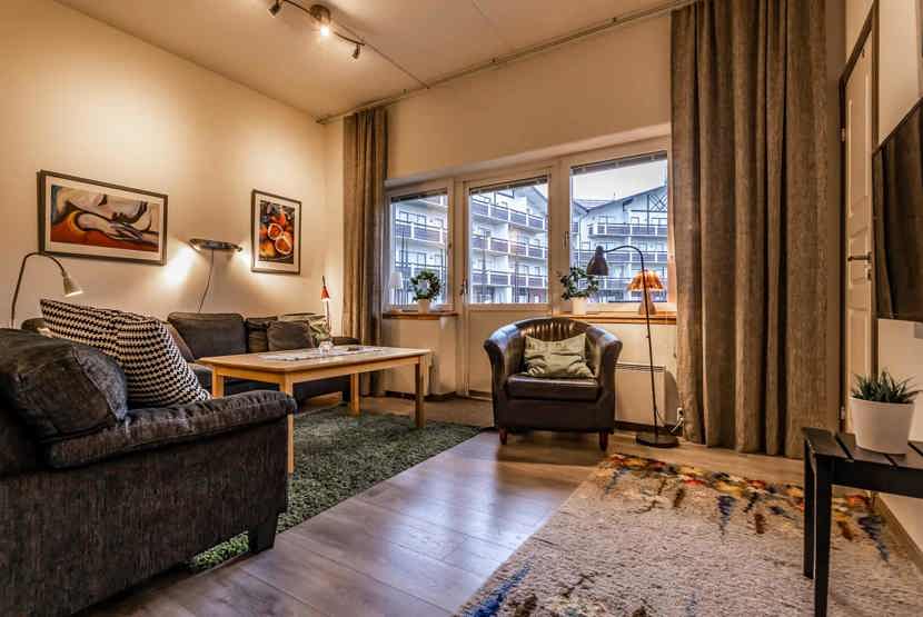 TV, tørreskab, rum til skiudstyr, udeplads (skovles ikke), Adgang til sauna og vaskerum, elevator findes i huset, 2 parkeringspladser.