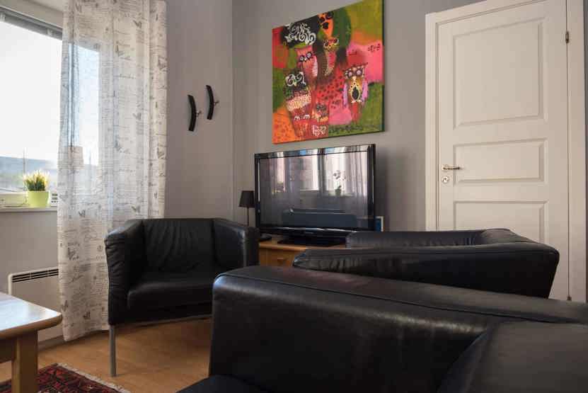 TV, tørreskab, 1 højstol, udeplads (skovles ikke), rum til skiudstyr, 2 parkeringspladser, Adgang til sauna og vaskerum, elevator findes i huset.