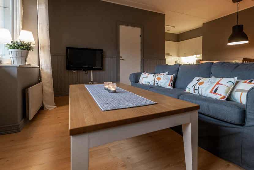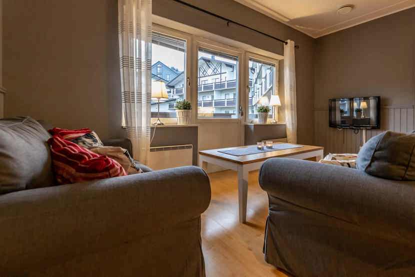 Opholdsstue med køkkenafdeling. TV, tørreskab, rum til skiudstyr, balkon, Adgang til sauna og vaskerum, elevator findes i huset, 2 parkeringspladser.