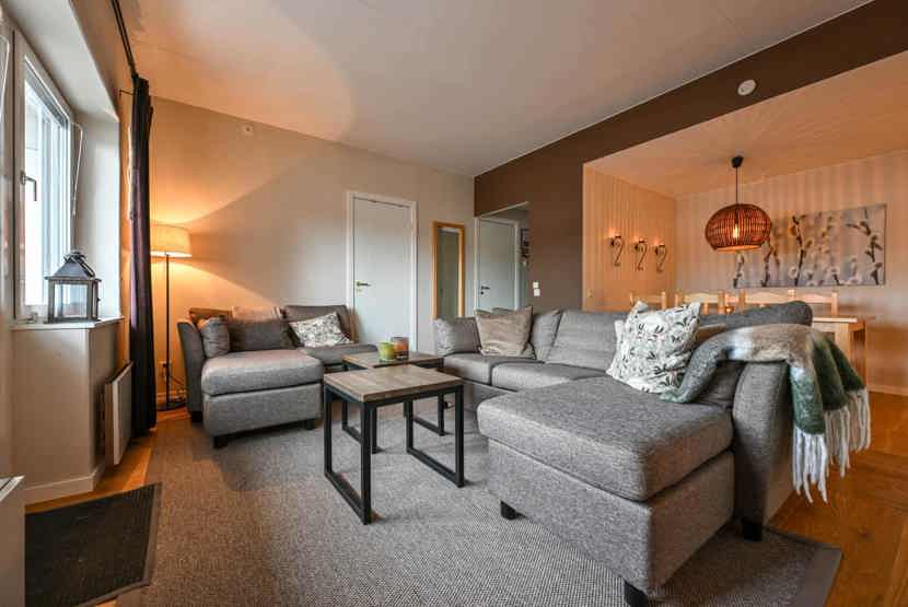 Opholdsstue med køkkenafdeling. TV, tørreskab, rum til skiudstyr, balkon, Adgang til sauna og vaskerum, elevator findes i huset, 2 parkeringspladser.