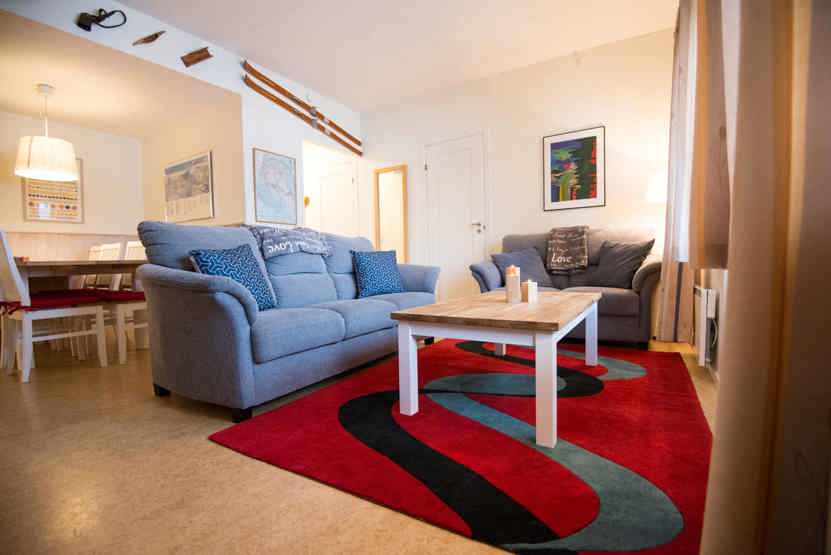 Opholdsstue med køkkenafdeling. TV, tørreskab, rum til skiudstyr, balkon, Adgang til sauna og vaskerum, elevator findes i huset, 2 parkeringspladser.