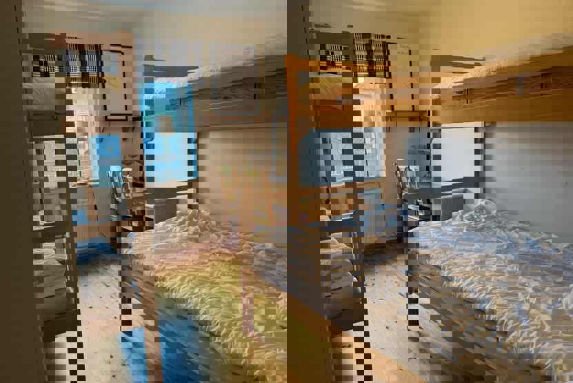 Soveværelse-1= 1 dobbeltseng 180 cm bred. Soveværelse-2= 1 køjeseng, 1 køjeseng.