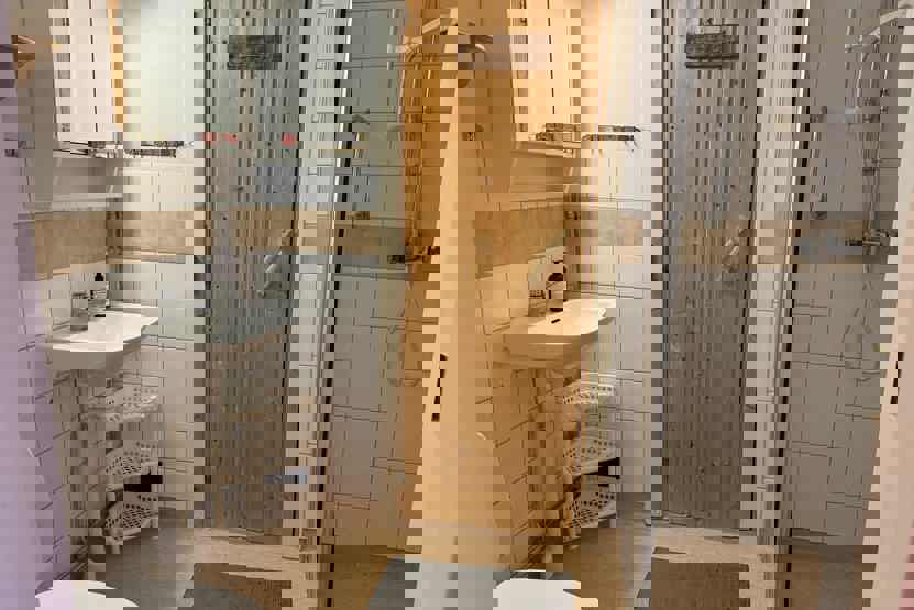 Badeværelset-1 = bruse/wc/sauna. Badeværelset-2 = bruse/wc.