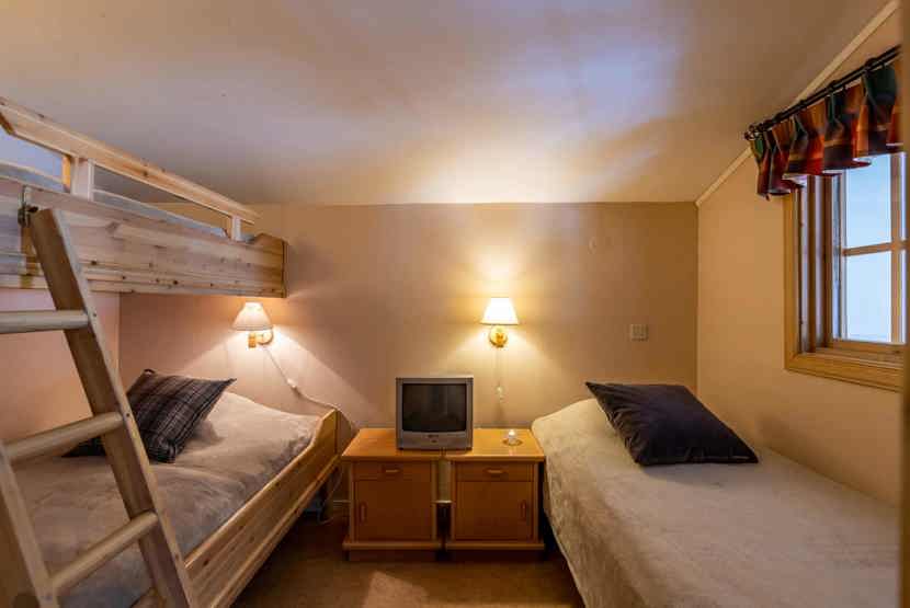 Soveværelse-1= 1 køjeseng med 120 cm bred underkøje , 1 enkeltseng. Soveværelse-2= 1 køjeseng og 1 enkeltseng. Trappe op til soveværelse.