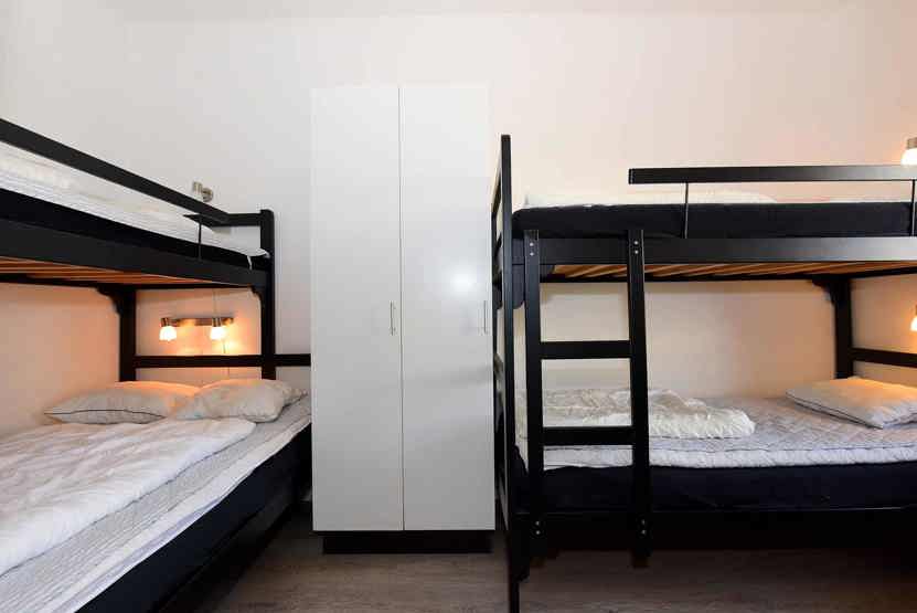 Soveværelse-1= 1 køjeseng med 120 cm bred underkøje , 1 køjeseng.