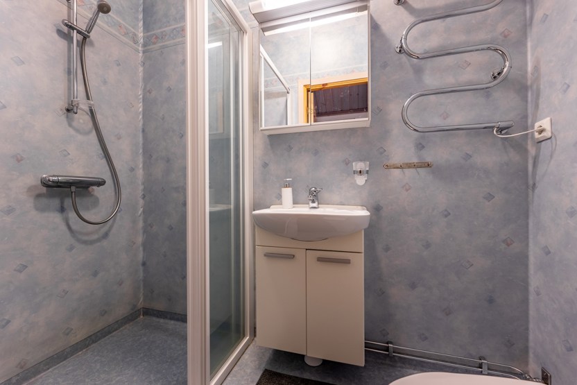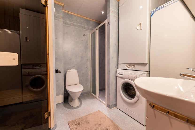 Badeværelset-1 = bruse/wc/sauna. Badeværelset-2 = bruse/wc.