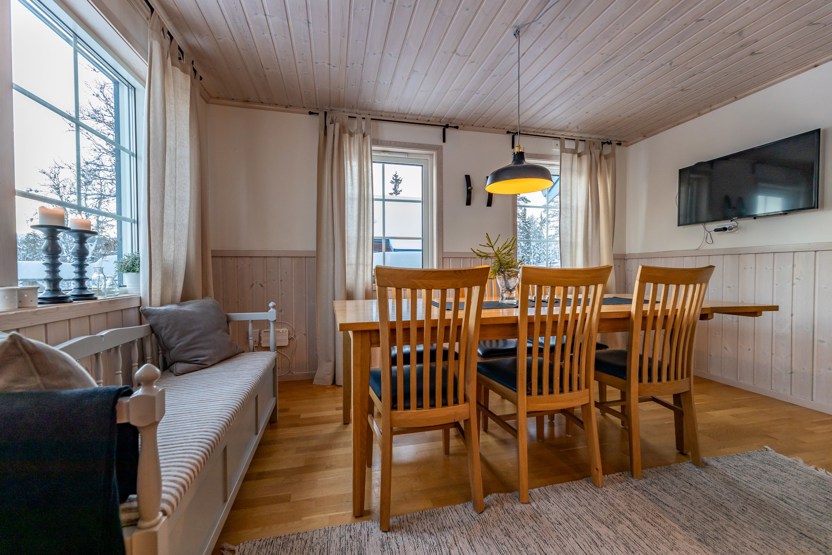 brændeovn (brænde indgår ikke), TV, 1 barneseng, 1 højstol, tørreskab, skistøvletører, vaskemaskine, altan (skovles ikke), rum til skiudstyr, udtag til motorvarmer til bilen findes ved P-pladsen. Kræver specielt stik i bilen.