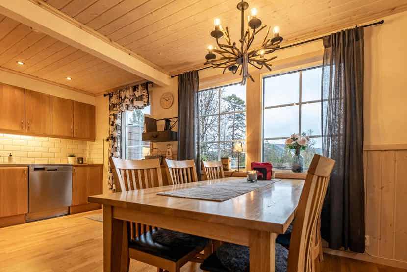 brændeovn (brænde indgår ikke), TV, 1 højstol, tørreskab, skistøvletører, vaskemaskine, altan (skovles ikke), rum til skiudstyr, adgang til elbilopladere med type 2 stik mod betaling.