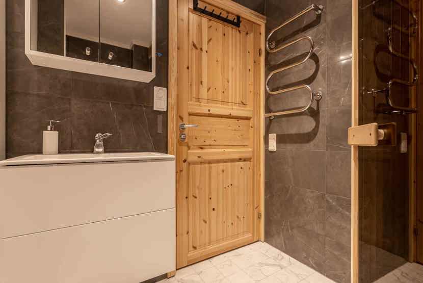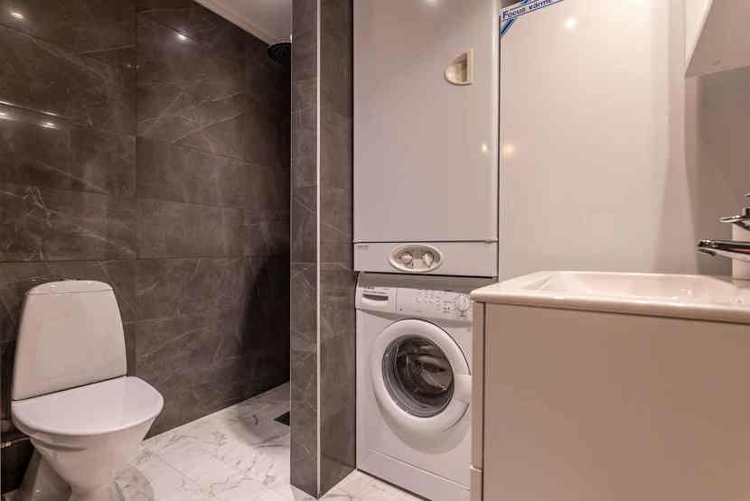 Badeværelset-1 = bruse/wc/sauna. Badeværelset-2 = bruse/wc.