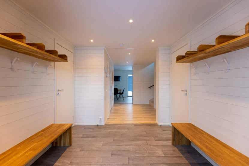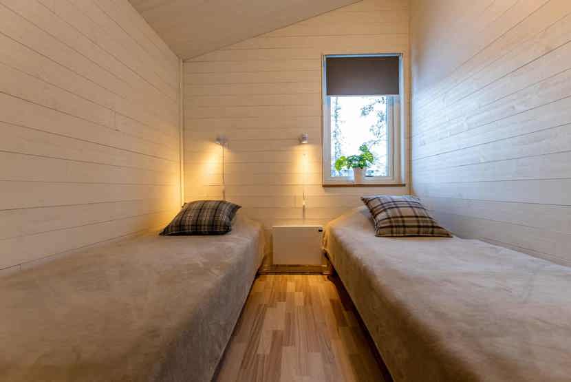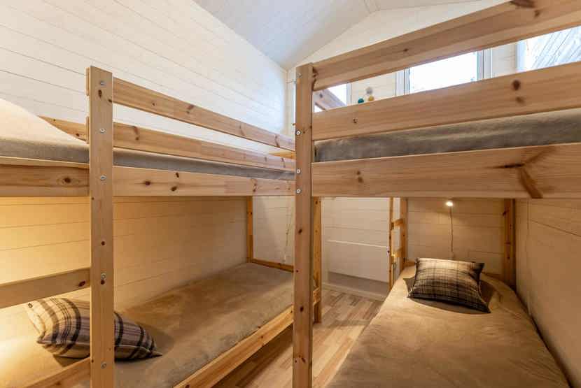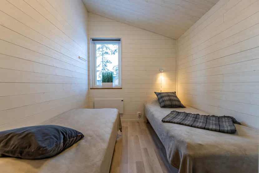 Soveværelse-1= 1 dobbeltseng 180 cm bred. Soveværelse-2= 1 dobbeltseng som kan laves om til to enkeltsenge. Soveværelse-3= 2 enkeltsenge 80 cm bred. Soveværelse-4= 2 enkeltsenge 80 cm bred. Soveværelse-5= 2 køjesenge 80 cm bred.