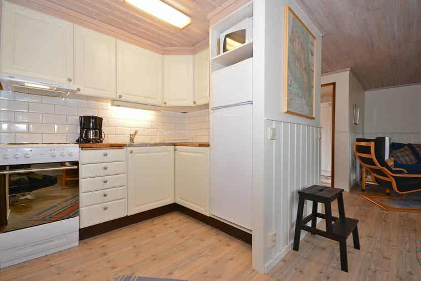 Køkkenet indeholder: elkomfur med ovn, køleskab, microovn.