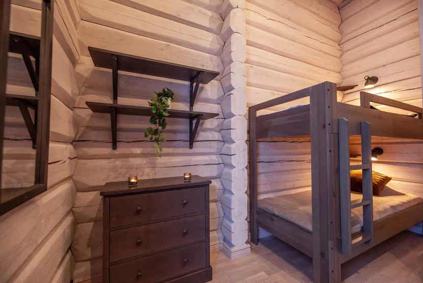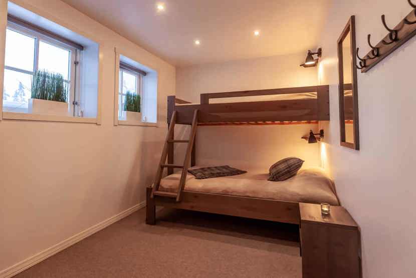 Soveværelse-1= 1 dobbeltseng 180 cm bred. Soveværelse-2= 1 køjeseng hvor både over og underkøje er 90 cm bred. Soveværelse-3= 1 køyeseng med 120 cm bred underkøye og 80 cm bred overkøye. Soveværelse-4= 1 køyeseng med 120 cm bred underkøye og 80 cm bred overkøye.