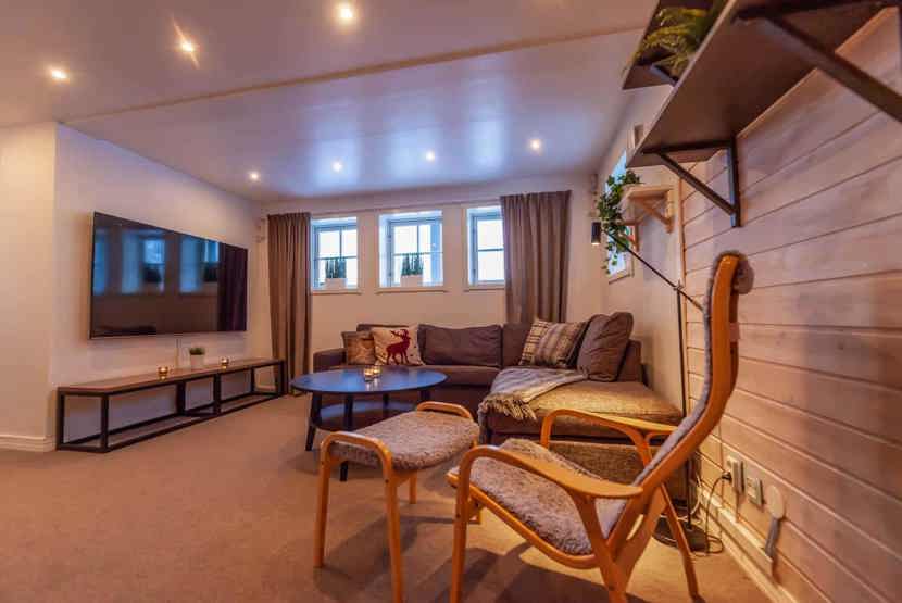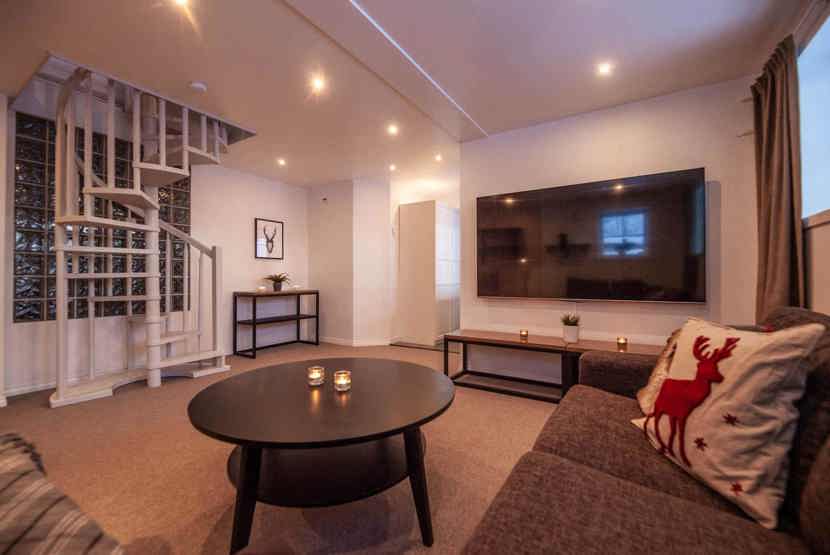 TV, tørreskab, vaskemaskine, brændeovn (brænde indgår ikke), udeplads (skovles ikke), rum til skiudstyr, 2 parkeringspladser.