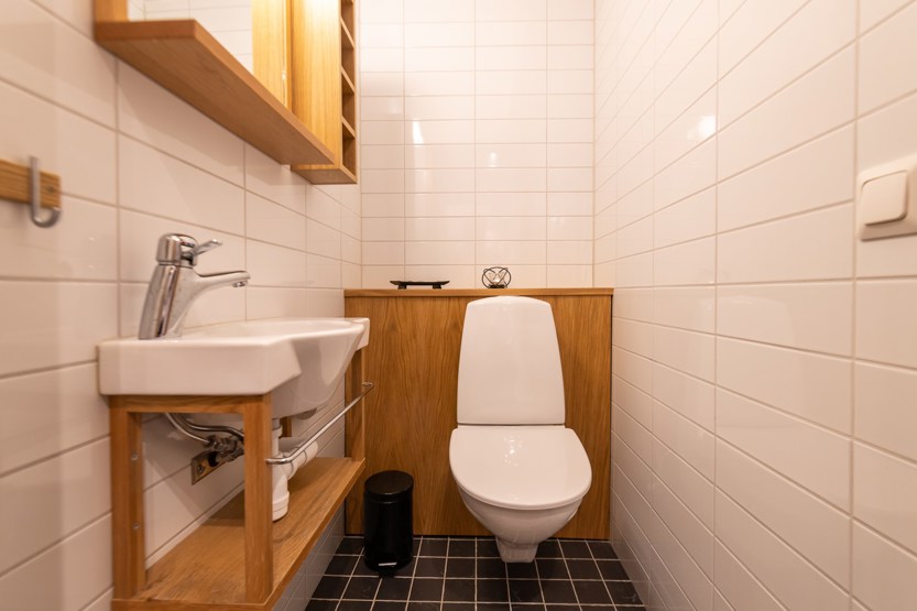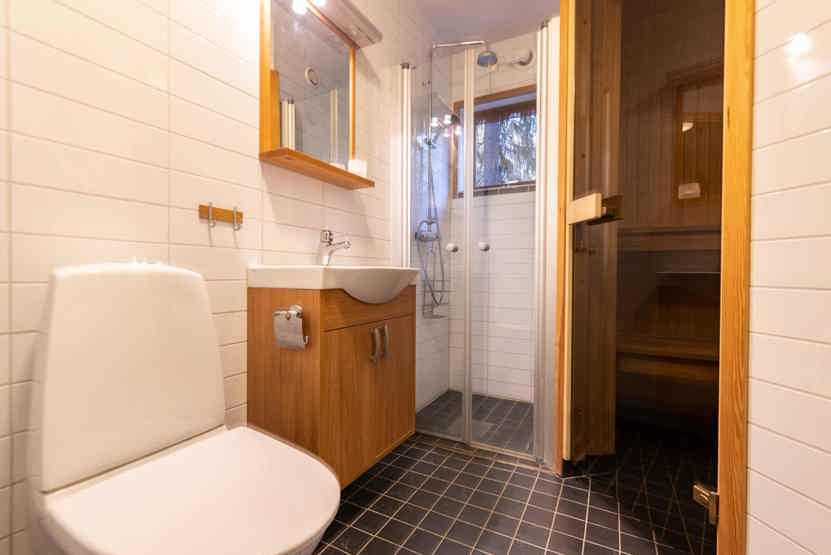 Badeværelset-1 = bruse/wc/sauna. Badeværelset-2 = wc.