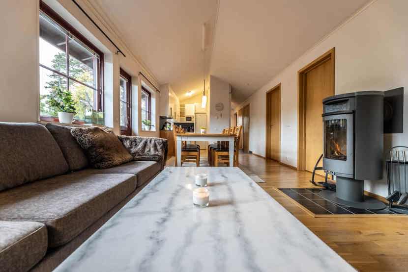 TV, brændeovn (brænde indgår ikke), tørreskab, vaskemaskine, tørretumbler, balkon, rum til skiudstyr, håndklædetørrer.