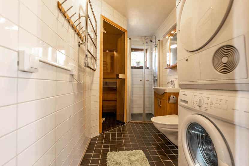 Badeværelset-1 = bruse/wc/sauna. Badeværelset-2 = wc.