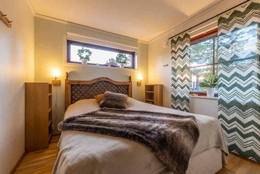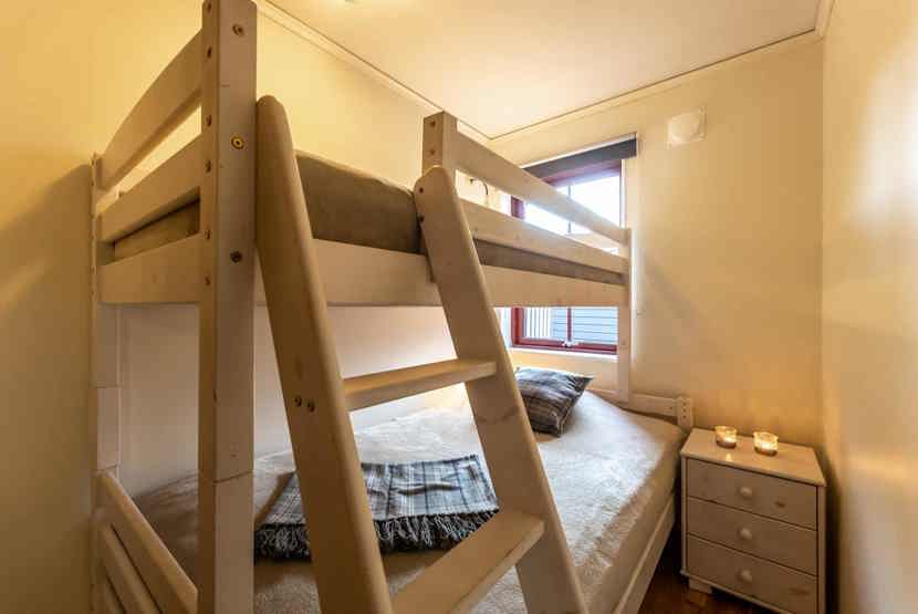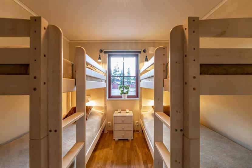 Soveværelse-1= 1 dobbeltseng. Soveværelse-2= 1 køjeseng med 120 cm bred underkøje . Soveværelse-3= 2 køjesenge.