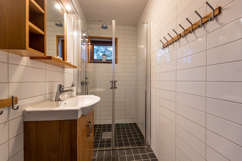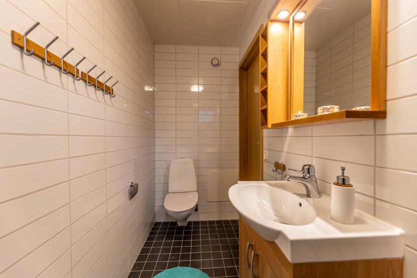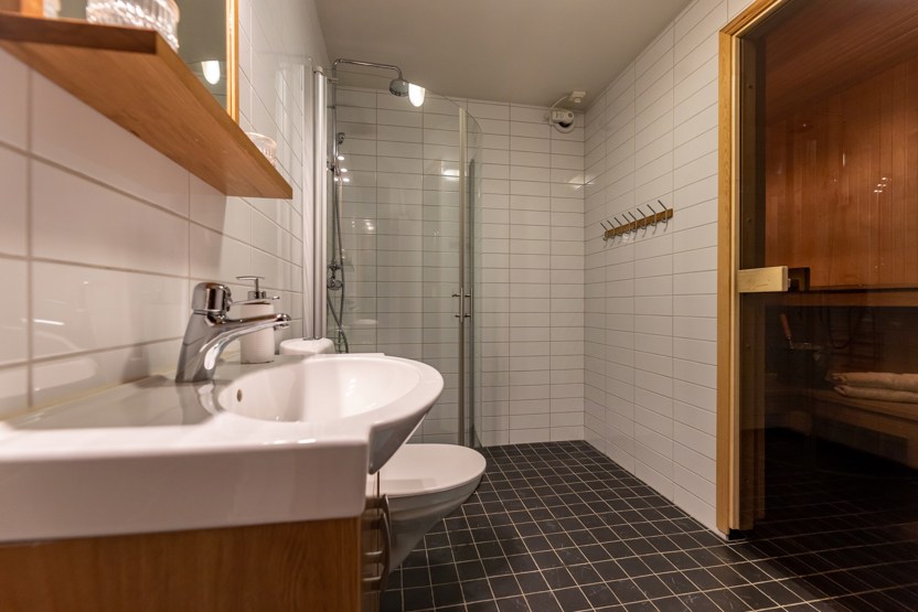 Badeværelset-1 = bruse/wc/sauna. Badeværelset-2 = bruse/wc.
